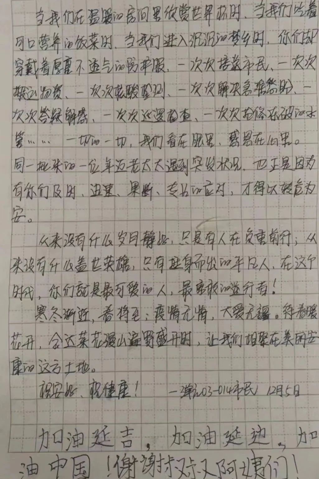 小棉襖集團(tuán)管理團(tuán)隊(duì)自11月27日入駐延吉市方艙驛站以來(lái),陸續(xù)收到了許多客人的表?yè)P(yáng)信,信中真摯的話(huà)語(yǔ)、熱烈的情感像冬日的暖陽(yáng)般充滿(mǎn)正能量,下面讓我們一起重溫表?yè)P(yáng)信中那些真摯的話(huà)語(yǔ)所帶來(lái)的溫暖吧!